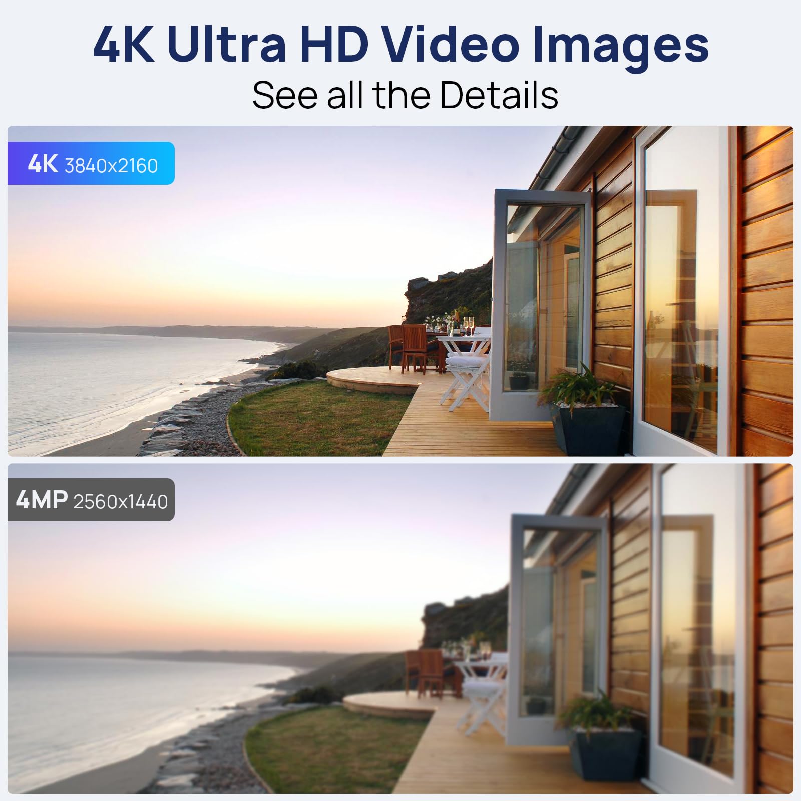 • 4K Ultra HD, crisp, detailed visuals for clear surveillance.