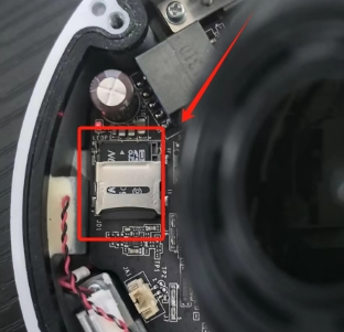 - Insert the SD card into the SD card slot of the Hikvision IP camera.
