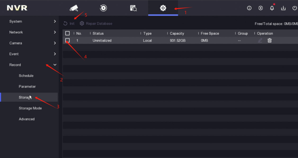 After rebooting, the Hikvision NVR will detect the installed hard disk.