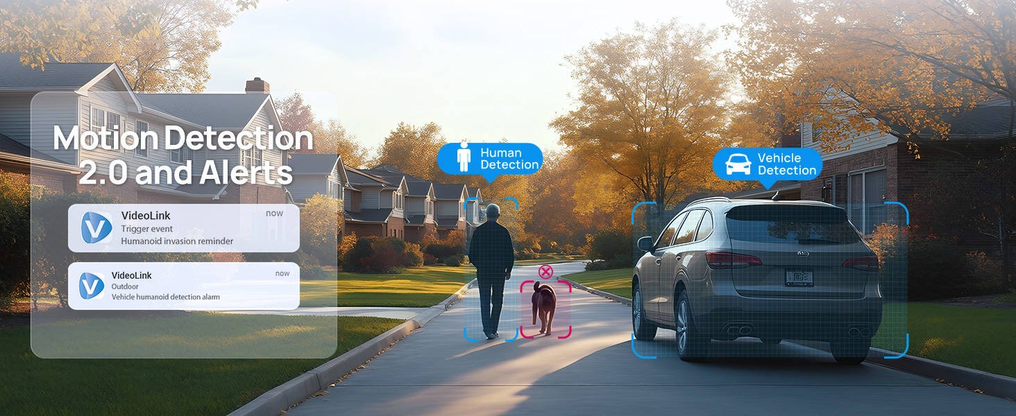 Advanced AI-powered detection reduces false alarms, sending real-time notifications to your device when activity is detected.