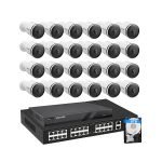 • 32ch 4k NVR system with 24 Bullet PoE cameras for seamless setup.