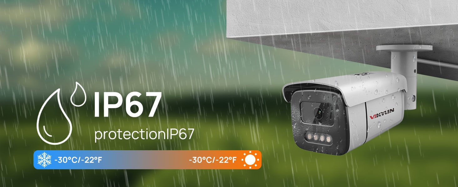 Designed for durability, this ip67 weatherproof camera withstands harsh elements including rain, snow, and dust. Operable from -30°C to 60°C, it provides reliable outdoor surveillance regardless of the season or climate conditions.