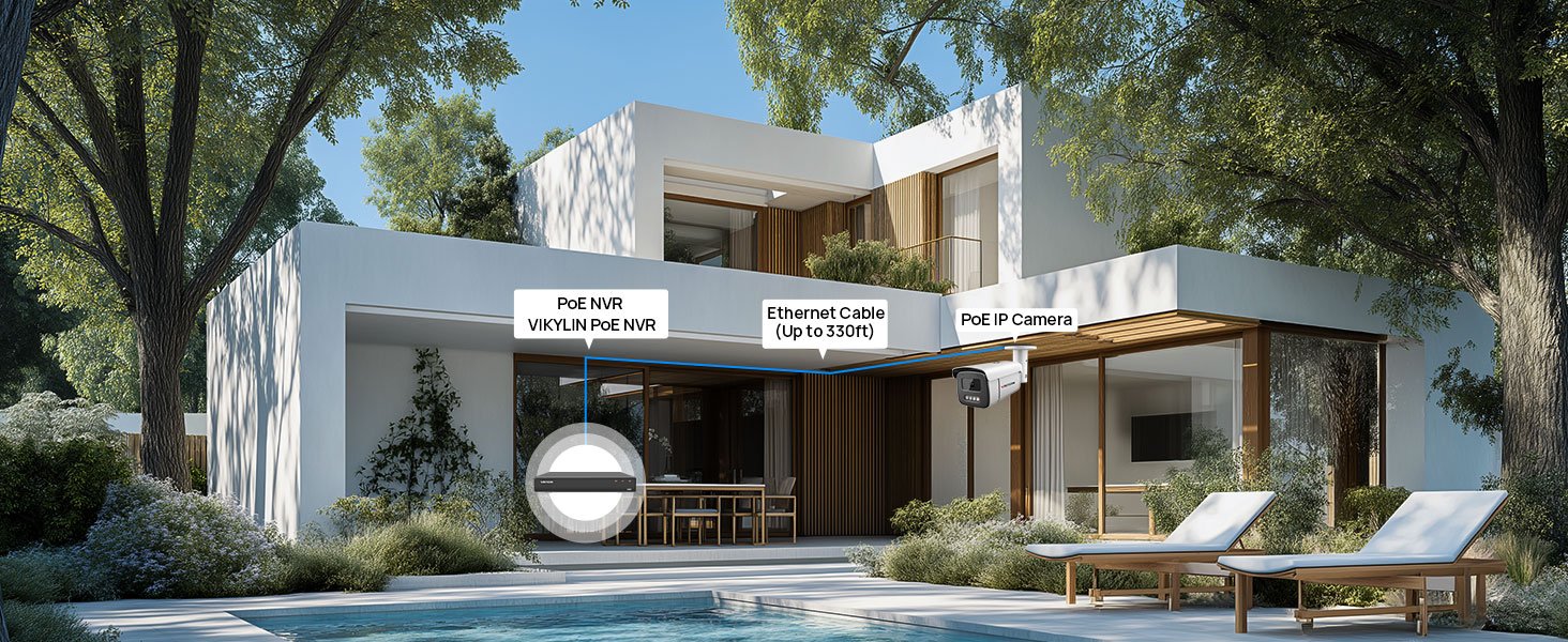 Streamline your setup with power over ethernet technology. Connect the poe ip camera directly to your NVR using a single Ethernet cable for both power and data transmission. This ensures a stable connection up to 330ft without needing extra power adapters.