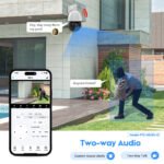 With advanced night vision technology, this 4K 8MP PTZ camera delivers clear footage in complete darkness up to 100m (328ft).