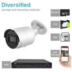 Higher resolution means more image details to be captured.Compared with 6MP cameras, 8MP hd security camera not only has better clarity but also better color purity and balance, in the aesthetic sense. 1/2″ CMOS Sensor, 2.8mm lens and 3840*2160 resolution ( 8MP ) play the trick.