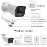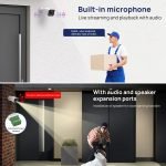 This color night vision cctv camera features smart dual light technology, automatically activating white lights when human or vehicle is detected at night, transitioning the video image from black and white to vibrant color for enhanced details. Additionally, the accompanying app allows users to easily switch between IR night vision mode for black and white video and colorful night vision mode for 24/7 color video.