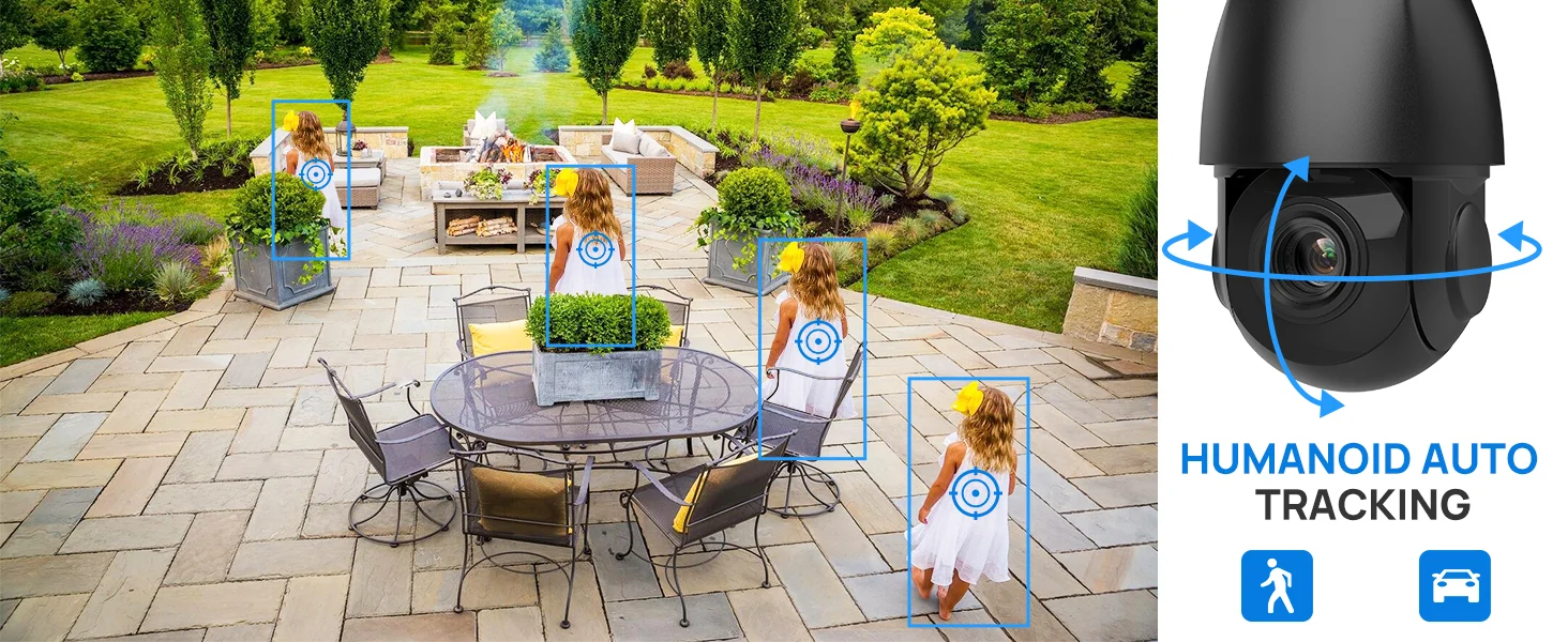 Automatic tracking function ensures that the camera dynamically follows moving objects, providing continuous monitoring and detailed recording of events.