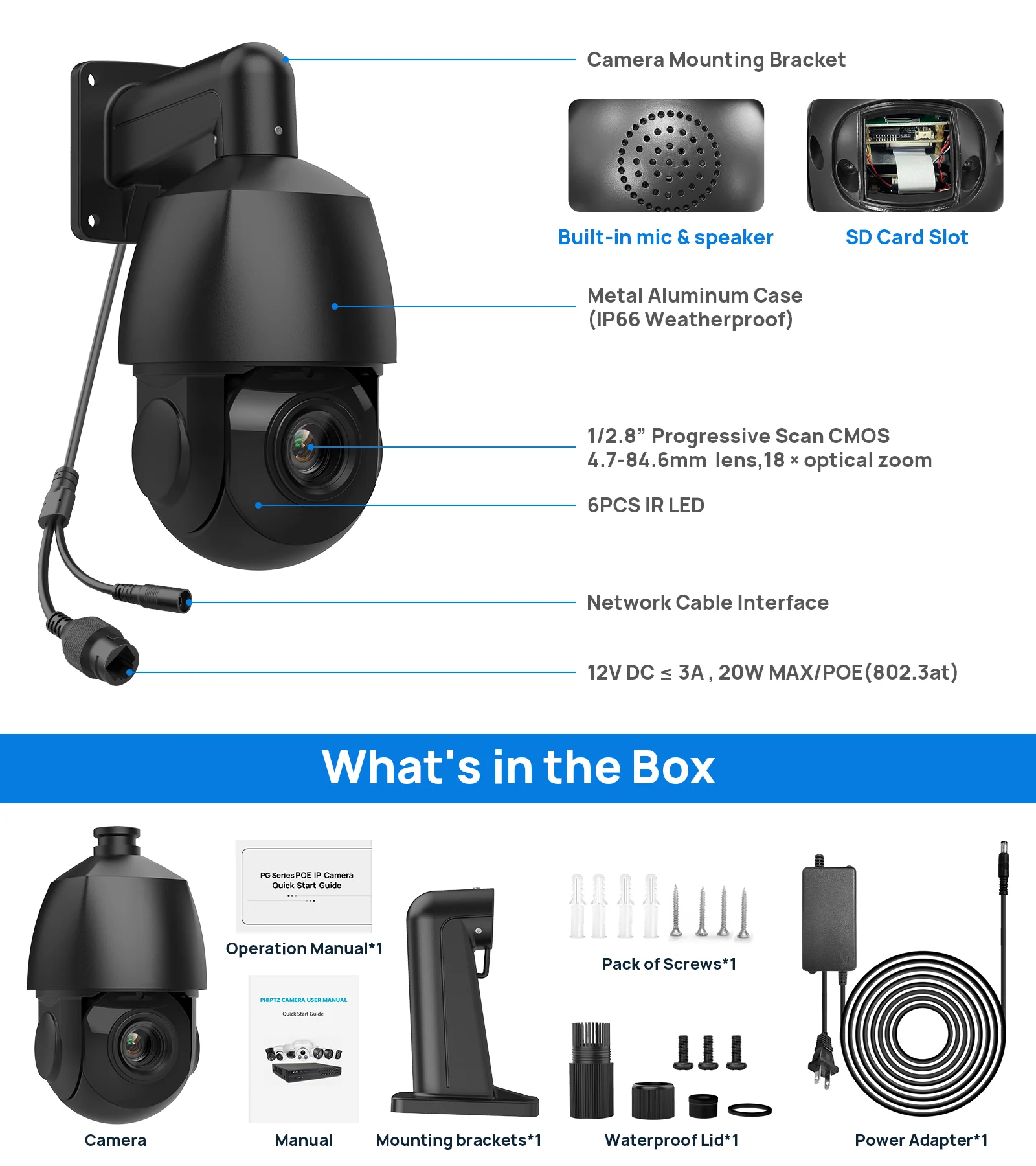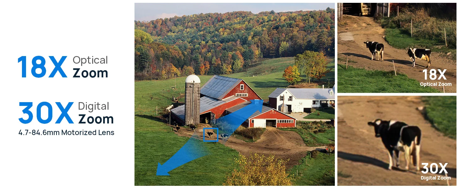 With an impressive 18X optical zoom capability, this camera provides extensive coverage and the ability to zoom in on specific details without compromising image quality.