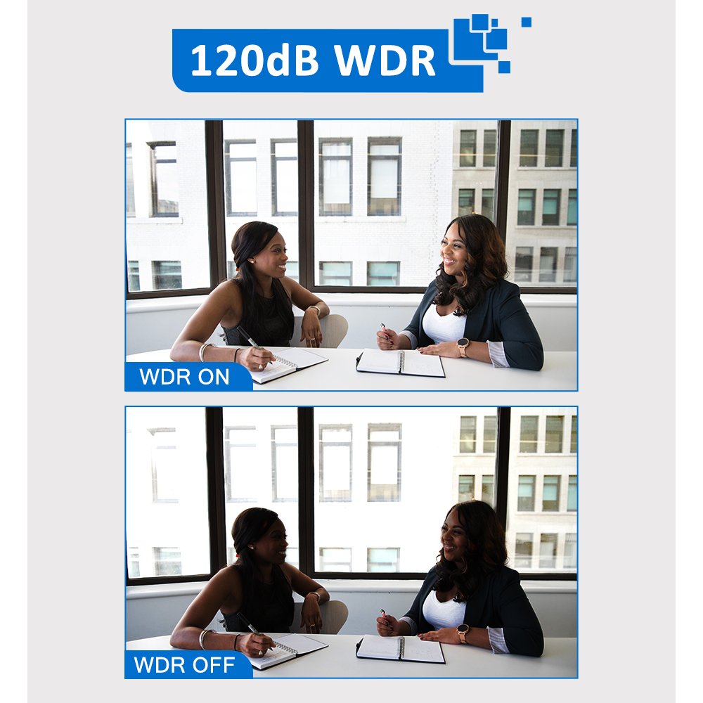 With 120dB WDR technology, the POE camera balances bright and dark areas effectively. Backlit scenes remain clear, preserving important details such as faces and vehicles.