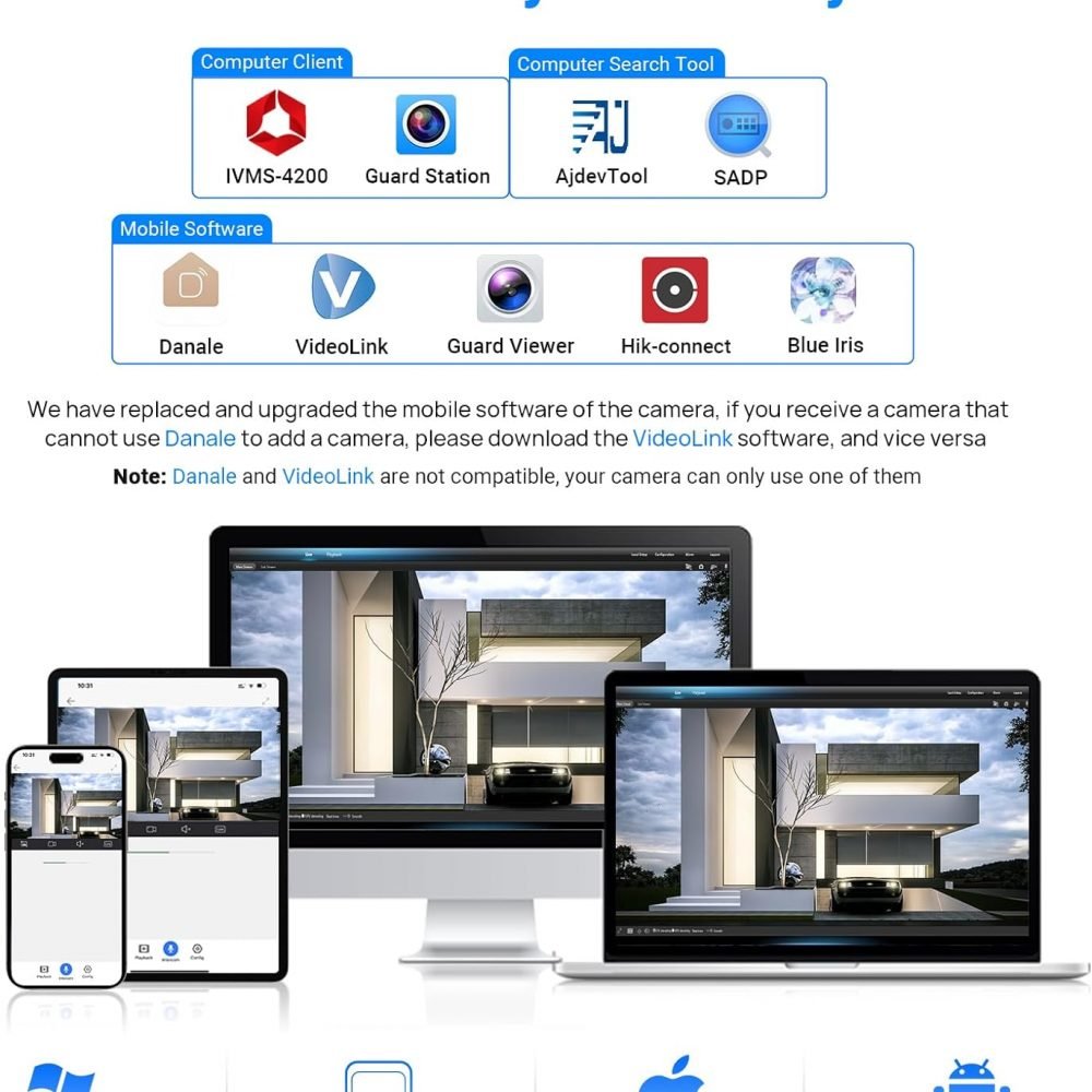 Free Danale or VideoLink application for live or playback viewing on any device, anytime, anywhere.