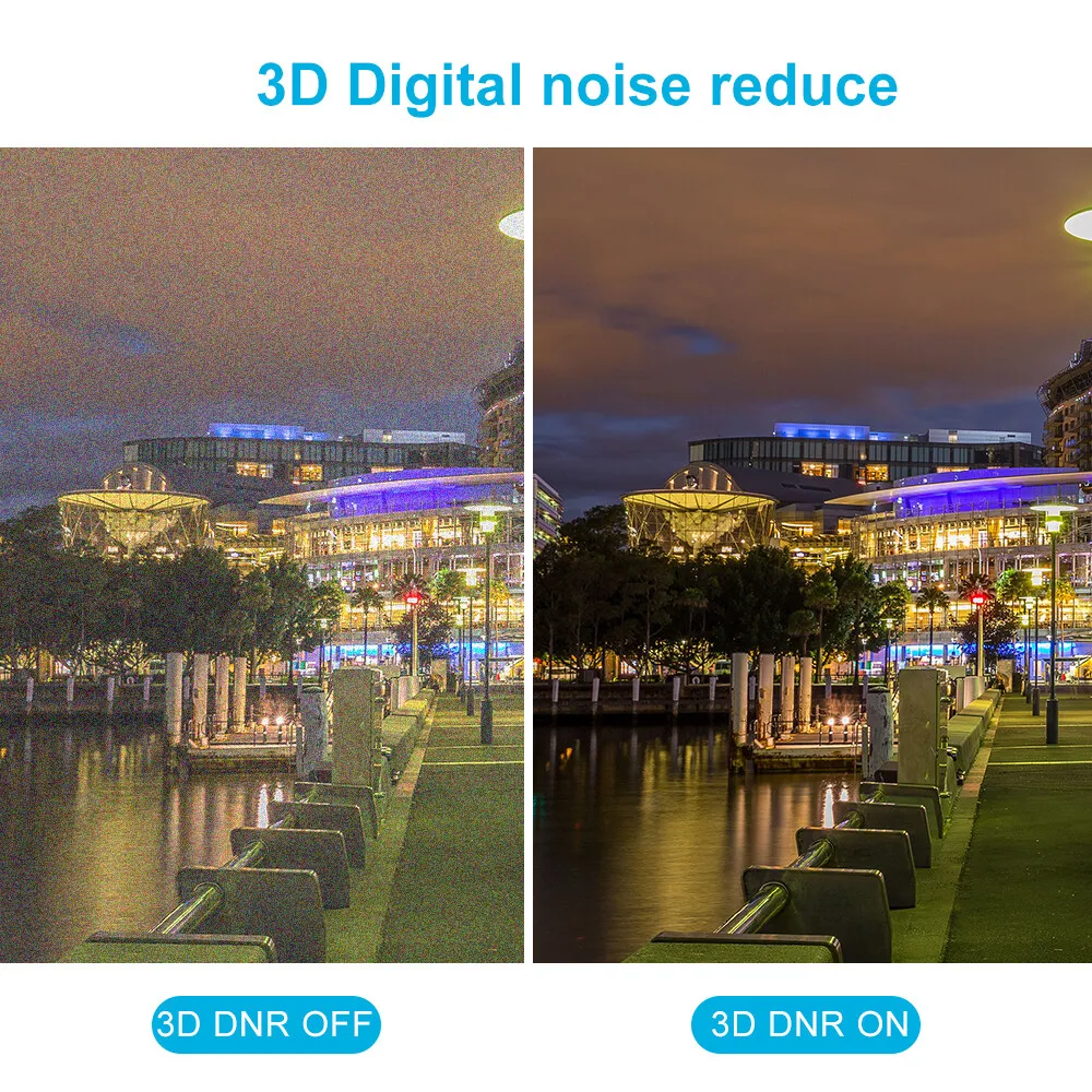 WDR, HDR, 3D DNR, HLC, and BLC optimize image quality in all lighting conditions, from bright sunlight to low-light environments.