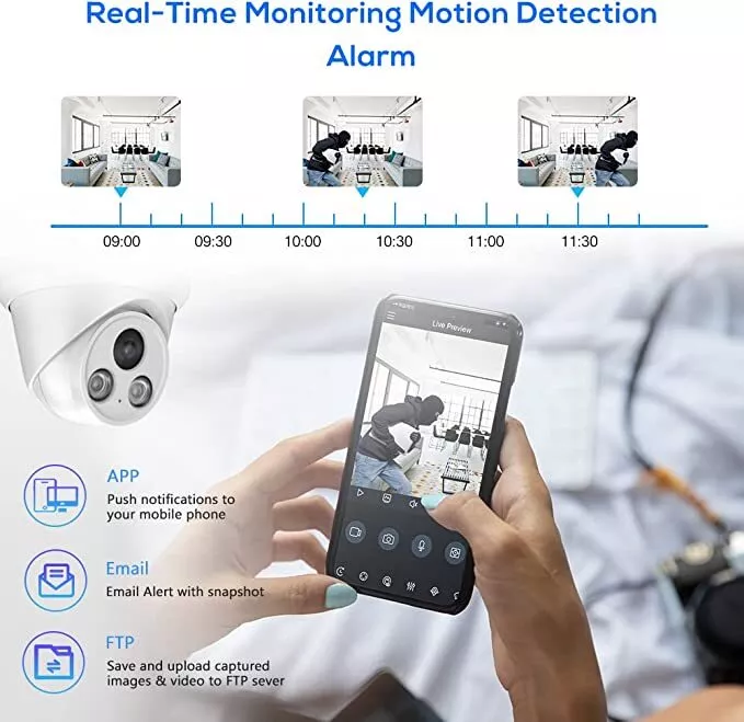 Integrated microphone allows you to hear what’s happening in the area, enhancing security.