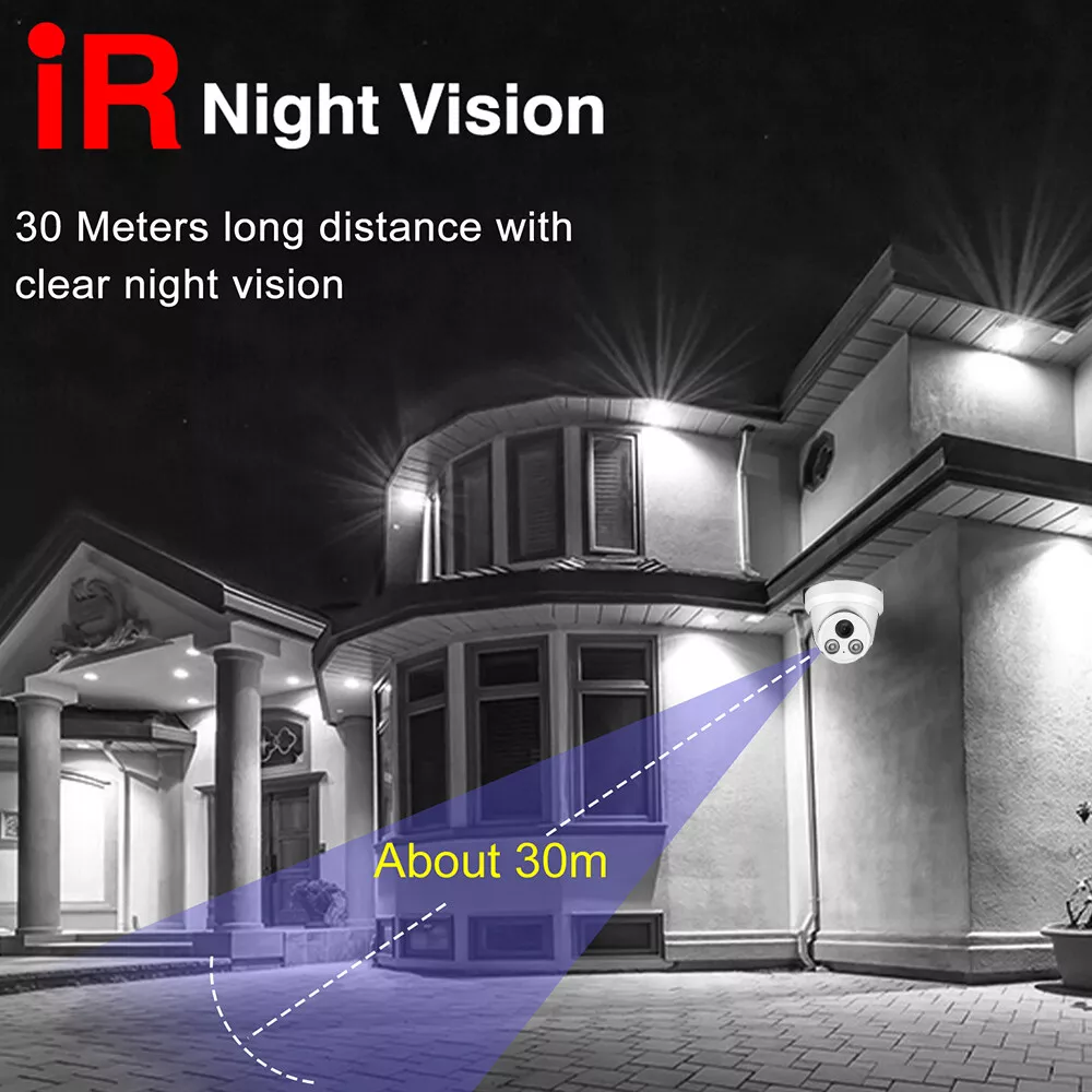Infrared LEDs allow monitoring up to 30 meters in total darkness, ensuring 24/7 protection.