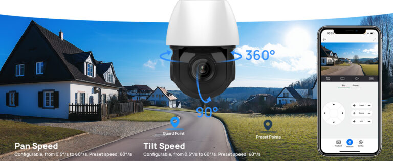 This night vision PTZ camera delivers sharp 2592×1944 images using a 1/2.8″ IMX335 CMOS sensor. It ensures detailed monitoring for homes and businesses, optimizing clarity for both live view and playback.