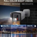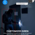 The camera features smart dual lights with IR and full-color night vision capabilities. The spotlight function illuminates the area, providing clear, colorful footage even in complete darkness. Additionally, the security siren with 110db alarm deters intruders effectively.