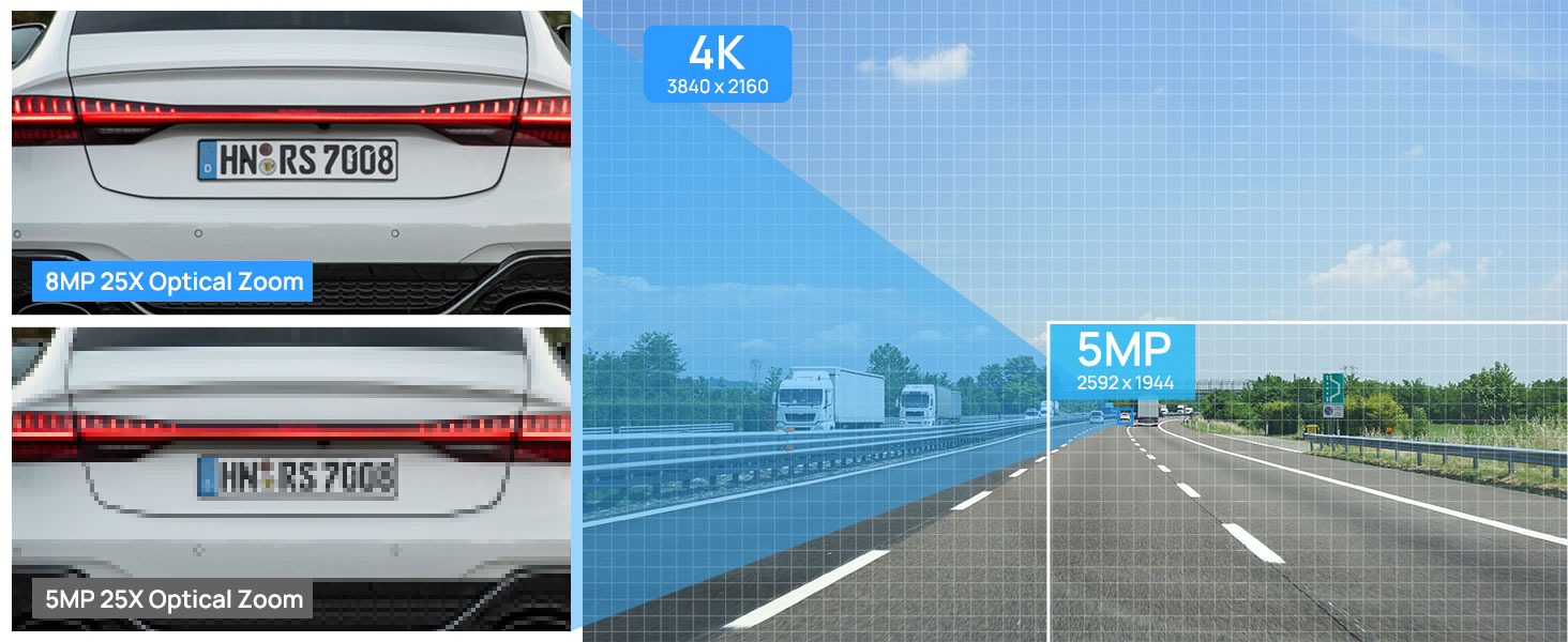 Delivers crystal-clear visuals with 8-megapixel resolution and 25x optical zoom, ensuring every detail is captured even at long distances. Paired with 4K Ultra HD recording, this camera provides sharp, lifelike imagery for surveillance in both daytime and low-light conditions.