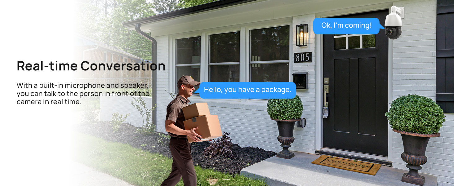 Equipped with built-in two-way audio, enabling live communication with visitors, staff, or intruders. Deter potential threats or guide personnel remotely.