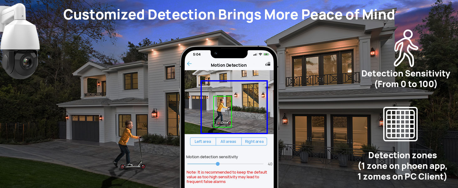 Define specific areas of interest and adjust motion detection sensitivity to focus on high-priority zones. Reduce irrelevant alerts and optimize surveillance efficiency