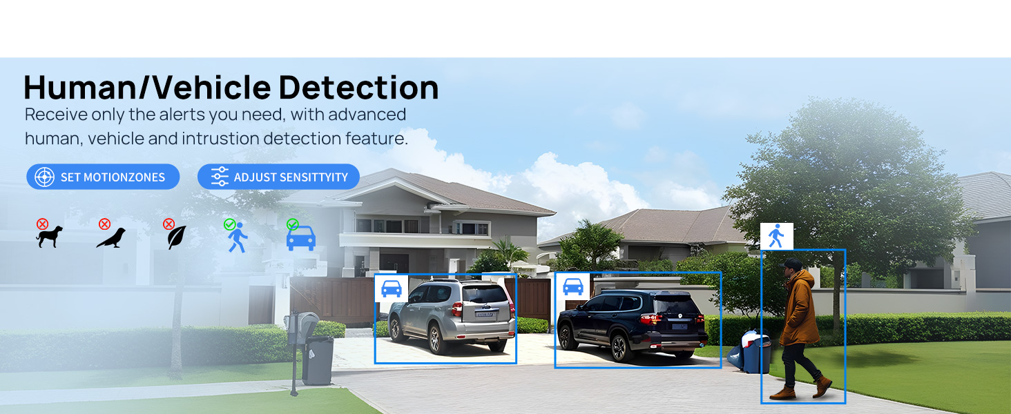 • Smart human/vehicle detection, reduces false alerts with precise activity recognition.