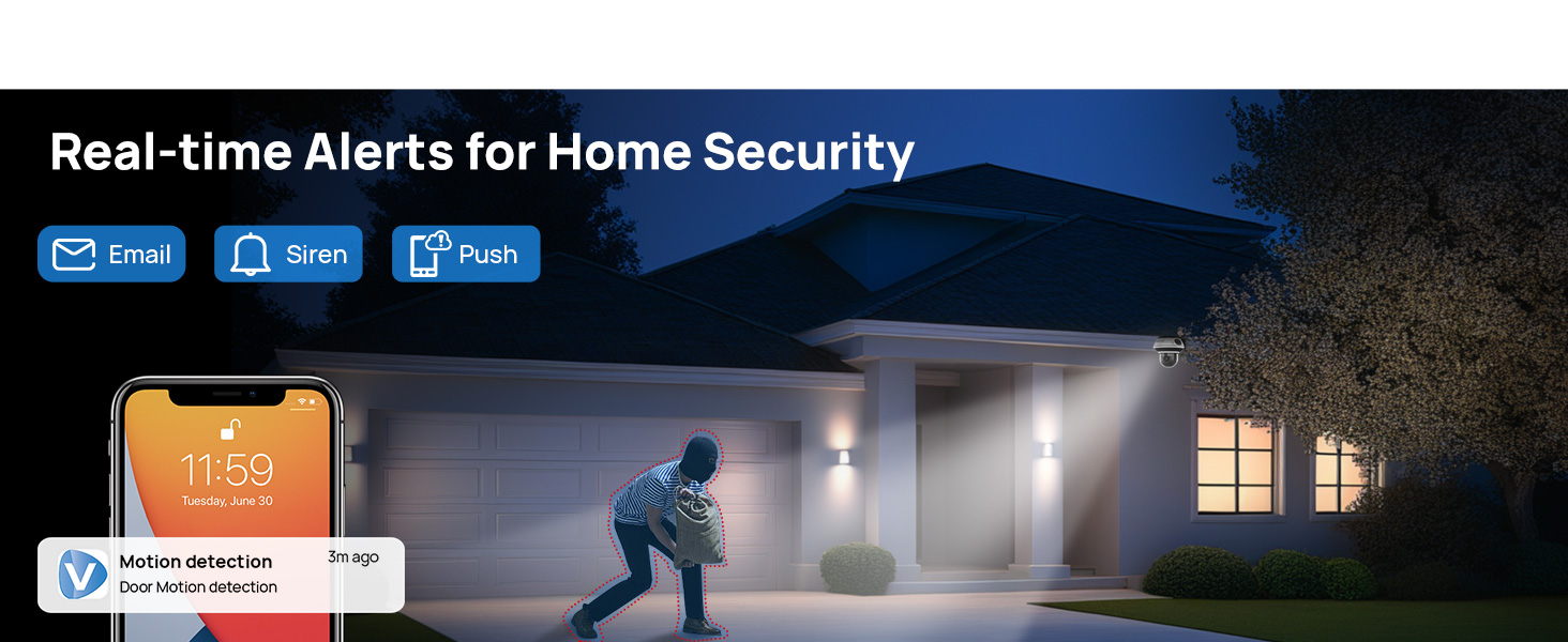 Receive instant security alerts via email, siren, or push notifications. The system detects motion and potential intrusions, sending timely notifications to keep you informed about your property’s security status.