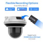 Supporting micro SD cards up to 512GB, this camera provides extensive local storage options. The reliable NVR integration ensures continuous recording and easy retrieval of video footage when needed.
