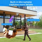 Two-way audio lets you talk and listen remotely via built-in mic/speaker. Ideal for greeting visitors, deterring threats, noise cancellation ensures clear communication.