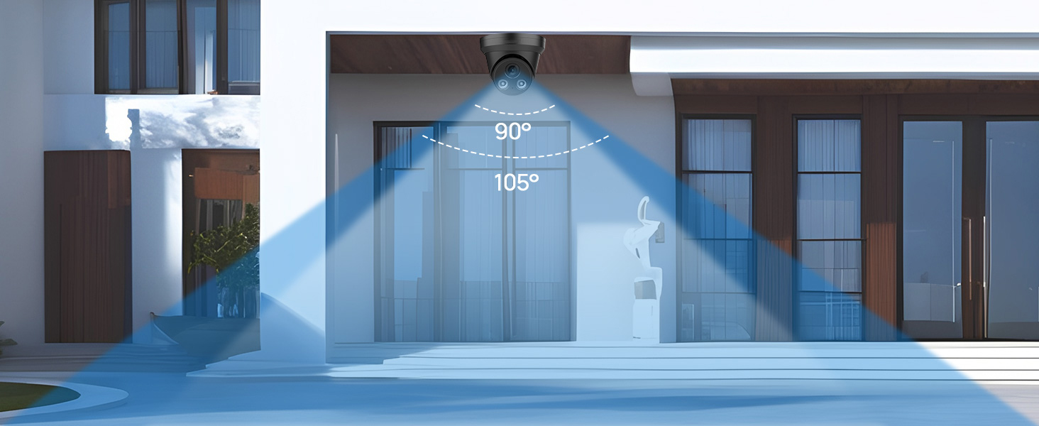The camera offers a wide 105° coverage angle, providing comprehensive surveillance of your property. Its wide field of view ensures that no area is left unmonitored, enhancing security and peace of mind.