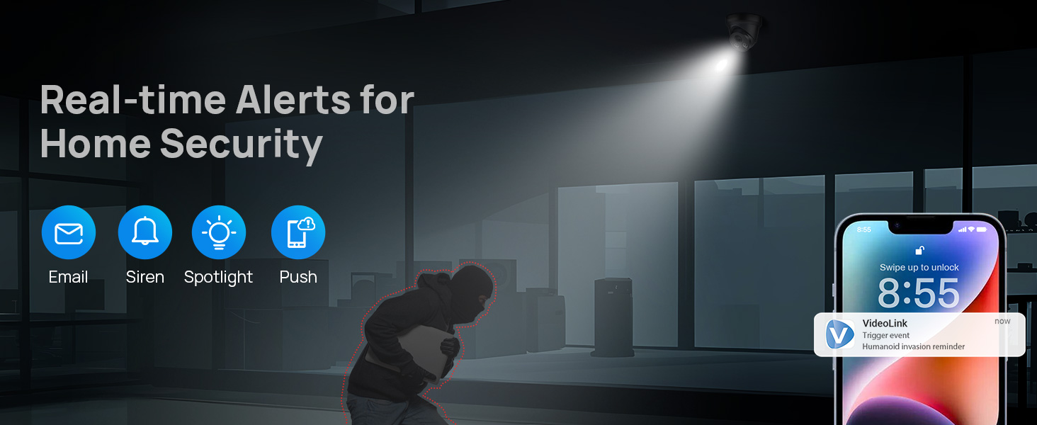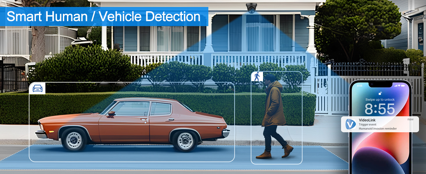 The camera is equipped with smart human and vehicle detection technology. It can accurately identify and track humans and vehicles, sending timely alerts to your smartphone.