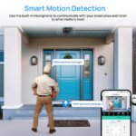 The camera is equipped with advanced motion detection capabilities. When it detects motion, such as a person approaching your home, it sends real-time alerts to your smartphone. This feature helps enhance home security and allows for immediate response to potential threats.