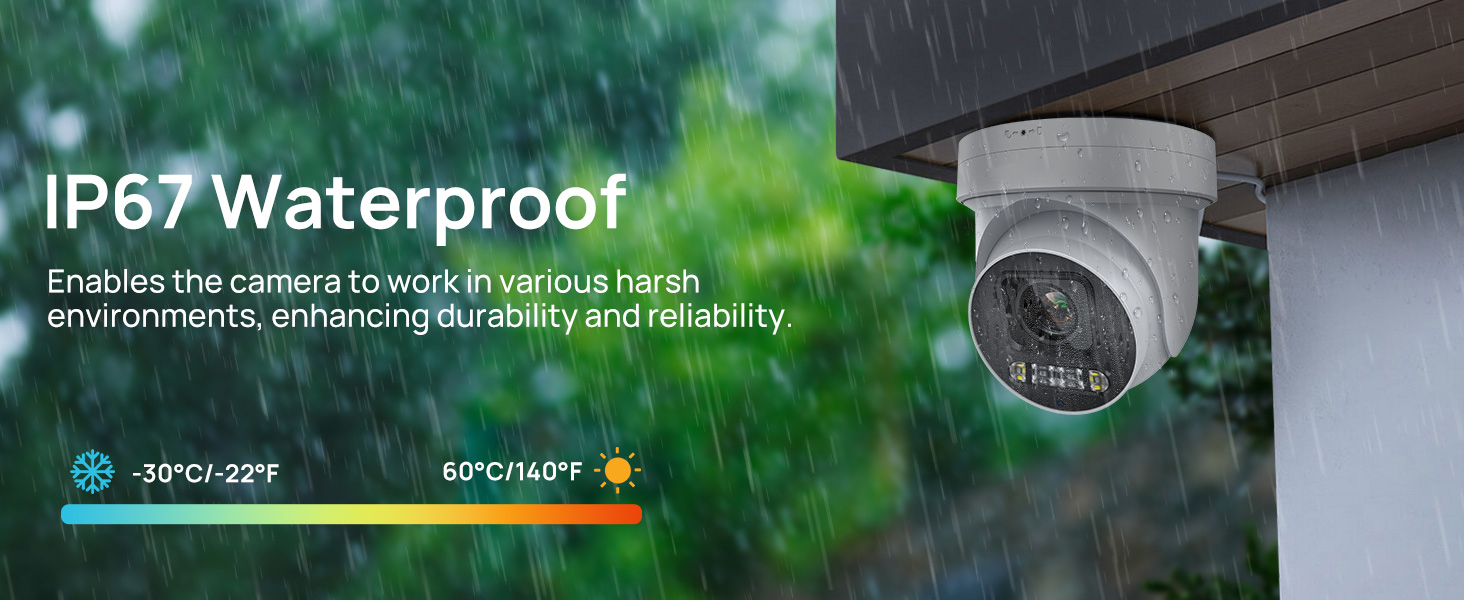 Designed for durability, the camera is IP67 waterproof and can operate in harsh environments. It functions effectively in extreme temperatures ranging from -30°C to 60°C (-22°F to 140°F).