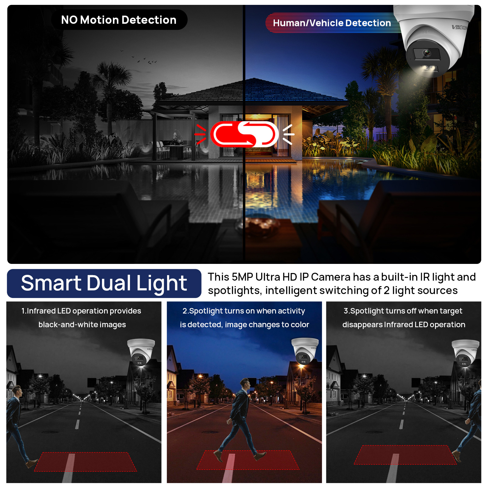 This 5MP ColorVu camera is equipped with highly accurate human – vehicle recognition technology. It can effectively distinguish between humans and vehicles in the monitored area, reducing false alarms and providing more precise security monitoring.