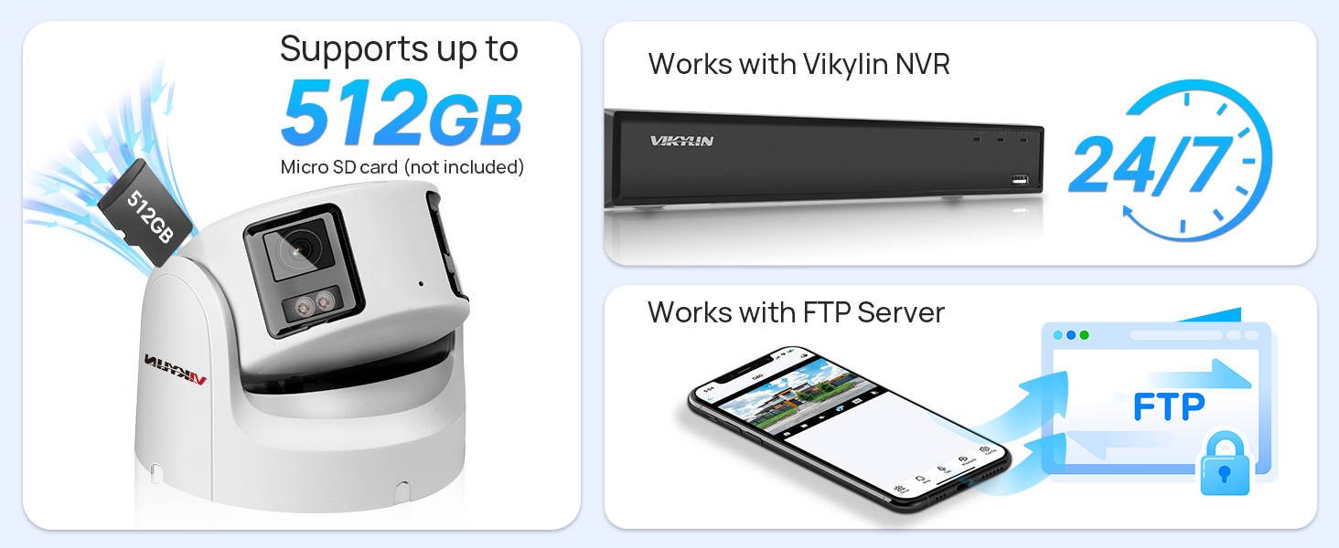 Эта интеллектуальная IP-камера поддерживает непрерывную запись 24/7, запись по движению или по расписанию. Все видео можно сохранить на карту памяти micro SD, NVR или FTP-сервер.