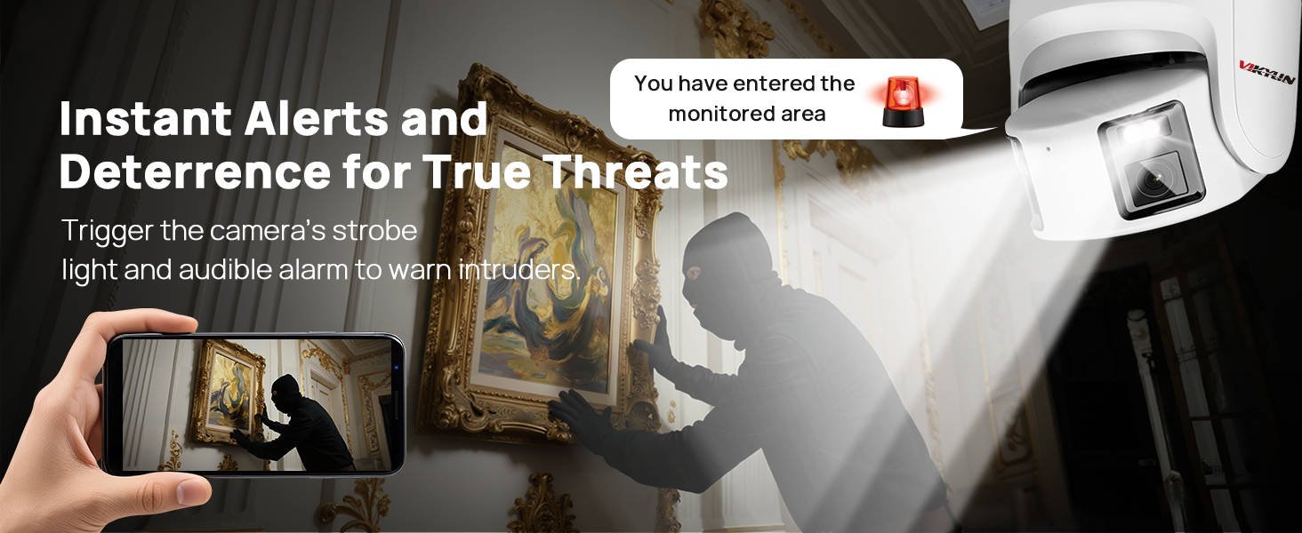 The camera comes with a smart alarm function that triggers alerts when specific events are detected, such as motion, person/vehicle presence, or IVS violations. Alerts can be sent to the user’s smartphone via the app, ensuring timely notification of potential security issues.