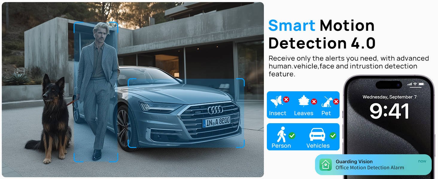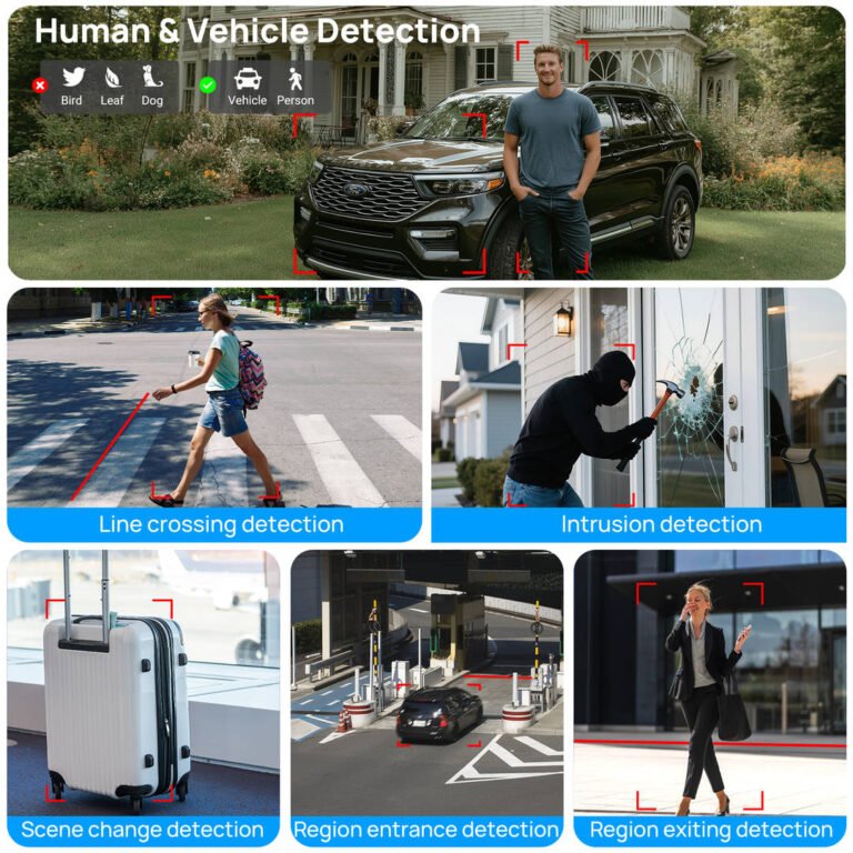 The camera is capable of huamn and vehicle detection, accurately identifying and distinguishing between people and vehicles in its field of view. This allows for targeted monitoring and alerts, making it easier to focus on relevant activities.