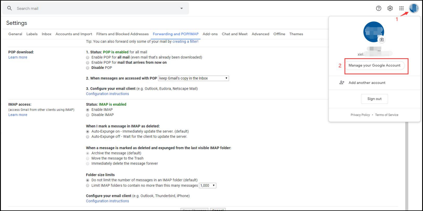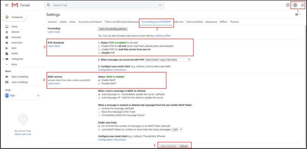 - Enable POP and IMAP.