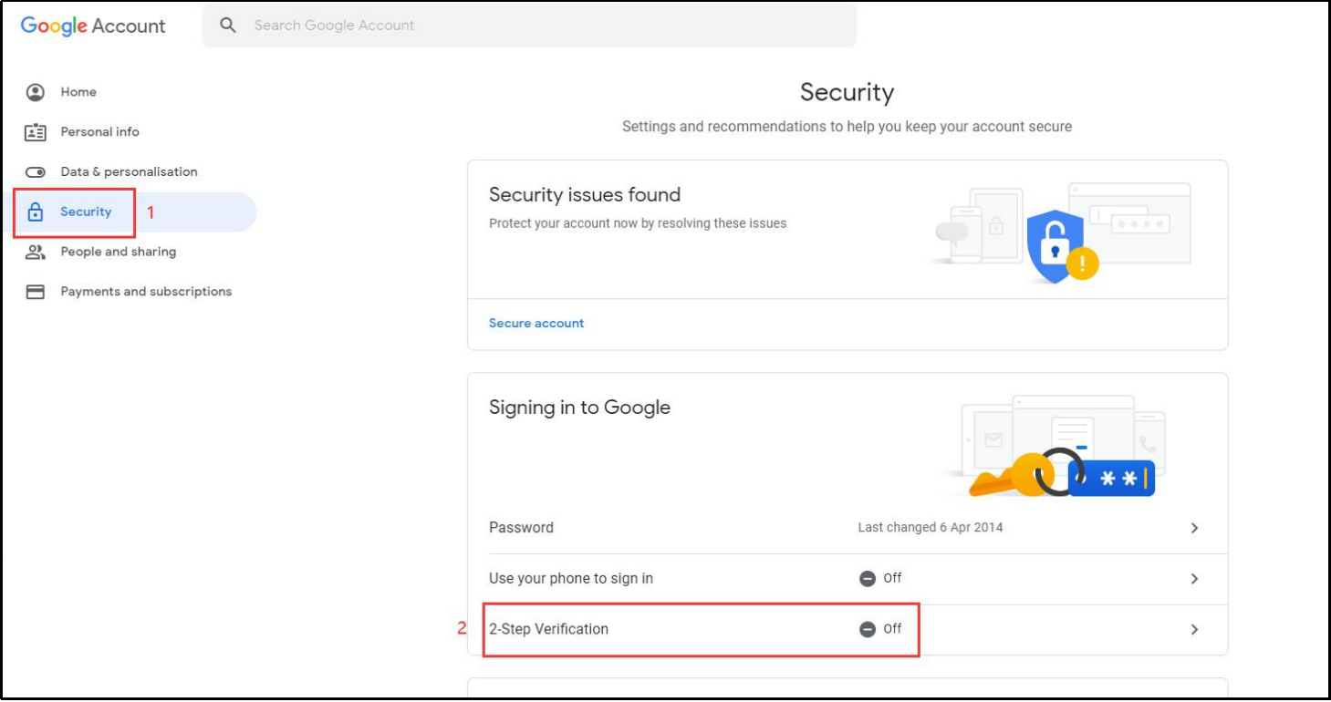 - Locate 2-Step Verification.
