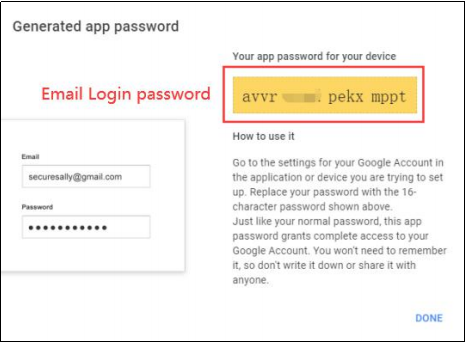 - Copy the 16-digit app password (this will be used in the camera SMTP settings).